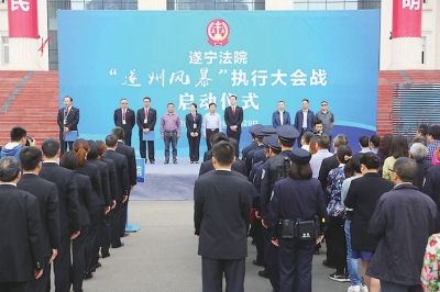 据了解,在此次集中执行行动中,市中级人民法院成立了“遂州风暴”执行大会战总指挥部,由市中级人民法院党组书记、院长杨诚担任总指挥,党组成员、副院长谢荣阳、执行局局长毕军和各县(区)法院院长任副总指挥。同时,杨诚及各县(区)法院院长均在执行指挥中心指挥调度执行行动。各院院长带队参与执行,约谈被执行人,现场强制腾退房屋,查封扣押冻结财产,身先士卒,鼓舞了全体执行干警的士气,增强了决胜“基本解决执行难”的信心和勇气。